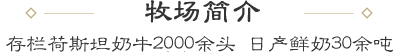 引進歐洲先進的(de)管理(lǐ)理(lǐ)念規範化(huà)科(kē)學管理(lǐ)¥₽ ♣。進口優質澳洲燕麥草(cǎo)、美(měi)國(g&÷₽uó)苜蓿草(cǎo),從(cóng)源頭上(shàng)保證了♥™ε(le)牛奶口感清甜、醇厚。